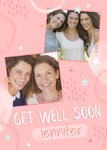 Front of card: Get Well Soon Photo Upload Card Photo frames on an abstract pattern background. Text reads: "Get well soon Jennifer". 'Jennifer' can be personalised!