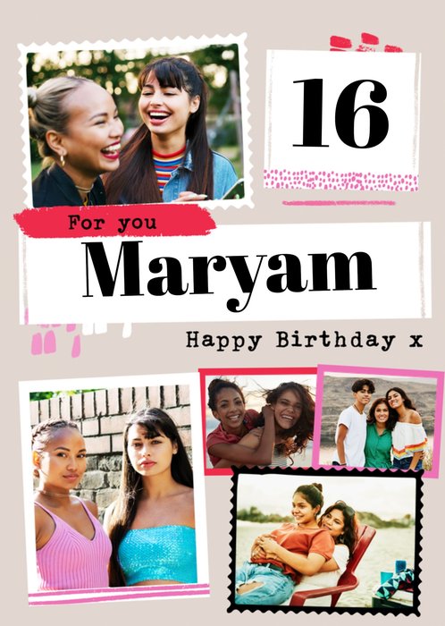 "16 for you Maryam happy birthday x". '16' and 'Maryam' can be personalised!