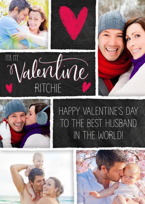 Photo Valentine's Day Card - For my Valentine - multi photo upload card Editable text says: Happy Valentine's day to the best husband in the world!