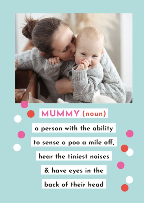"MUMMY (noun) a person with the ability to sense a poo a mile off, hear the tiniest noises & have eyes in the back of their head."