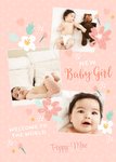 Pink Floral New Baby Girl Photo Upload Card