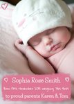 Pink Hearts Personalised Photo New Baby Announcement Postcard