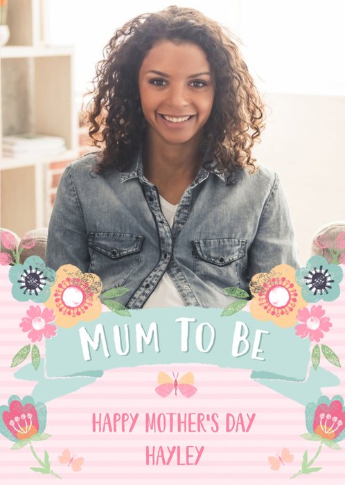Pink Striped Mum To Be Mother's Day Photo Card