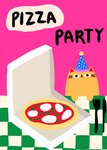 Pizza Party Cute Illustrated Ginger Cat Birthday Card