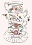 Pretty Flowers And Bees Illustrated Tea Cups Postcard