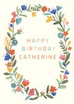 Pretty Illustrated Wreath of Flowers Happy Birthday Card