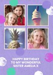 Purple Confetti Happy Birthday To Our Wonderful Sister Multi Photo Upload Card