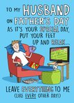 "To my husband on Happy Father's Day as it's your special day, put your feet up and relax... Leave everything to me (like every other day!)"