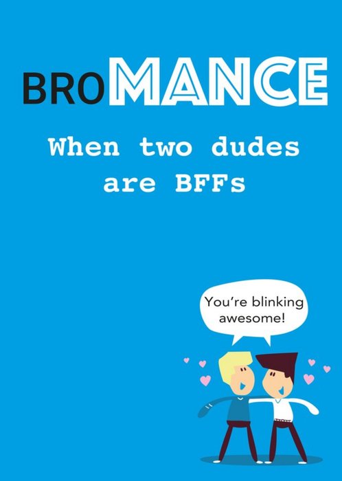 "Bromance when two dudes are BFFs, you're blinking awesome!"