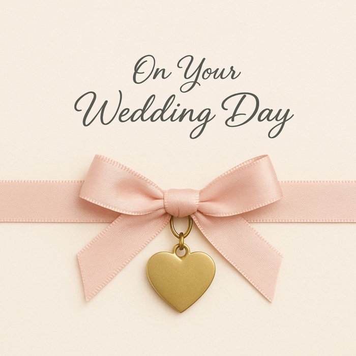 Ribbon Bow & Heart Charm On Your Wedding Day Card