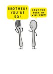"Brother! You're 50! Shut the fork up will you". 'Brother! You're 50!' can be personalised!