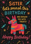 "Sister, let's smash this birthday and shower you with treats! Happy birthday!"