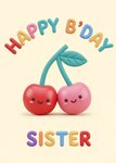 Smiling Cherries Illustrated Happy B'day Sister Card