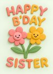 Smiling Flowers Illustrated Happy B'day Sister Card