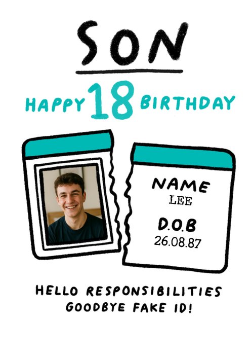 Son 18th Birthday Fake ID Humour Photo Upload Card