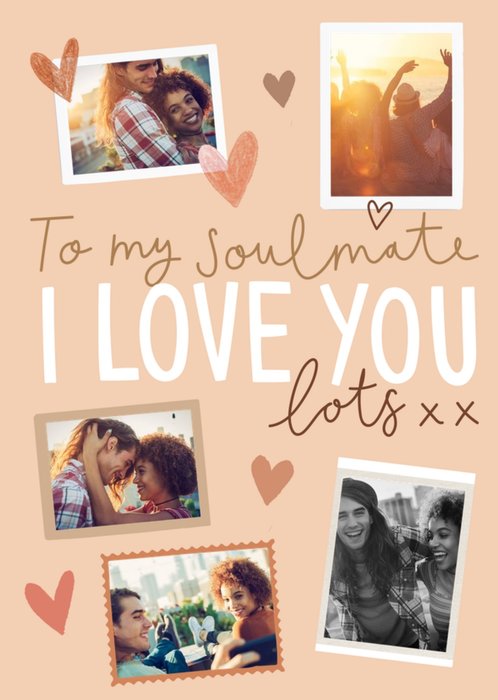 Neutral coloured design, with handdrawn hearts and text surrounding 5 photo upload frames.