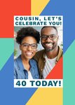 Featuring a photo upload area in the centre with a vibrant pattern composed of colourful shapes in shades of green, blue, red, and yellow, with bold text above and before the photo frame, creating a festive and eye-catching design perfect for celebrating a cousin’s Birthday.