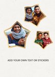 Front of card: A modern design featuring 3 star shaped photo upload frame edged in gold. This fully editable design allows you to add text and stickers to create a truly personalised card.