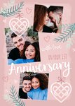 Cute Multi Photo Card with Illustrated Love hearts filled Celtic Knot design, surrounded by pretty Foliage.