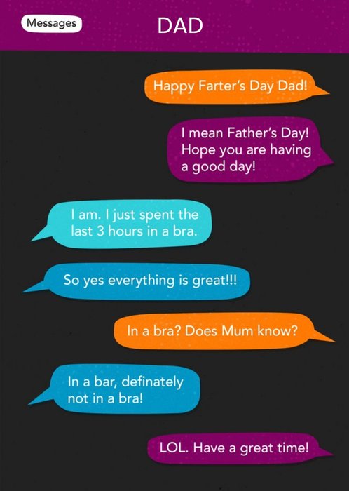 Text Message Funny Father's Day Card. Want to add even more jokes inside? Download the Moonpig app on iOS to add your own notes and doodles.