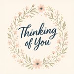 Thinking Of You Typography Illustrated Floral Wreath Card