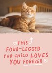 Text reads: "This four-legged fur child loves you forever".