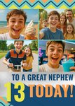 "To a great Nephew, 13 today!" "To a great Nephew" is editable.
