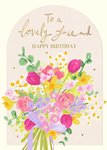 "To a lovely friend happy birthday". 'Happy birthday' can be personalised!