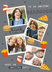 To An Awesome Grandson Ilustrated Pizza Birthday Card