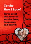 “To the one I love! We’re proof that love can survive farts, hangovers, and bad TV.”