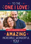 "To the one I love. Happy Valentine’s Day to amazing, incredible, wonderful you!"