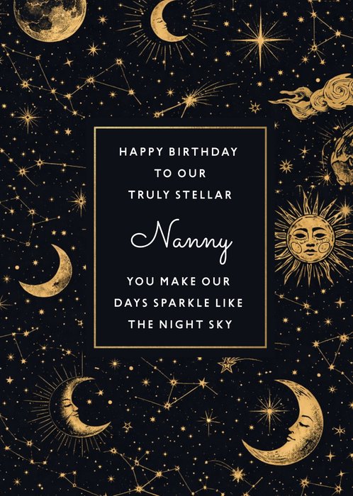"Happy birthday to our truly stellar Nanny you make our days sparkle like the night sky."