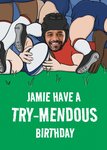"Jamie have a try-mendous birthday!". All text can be personalised!