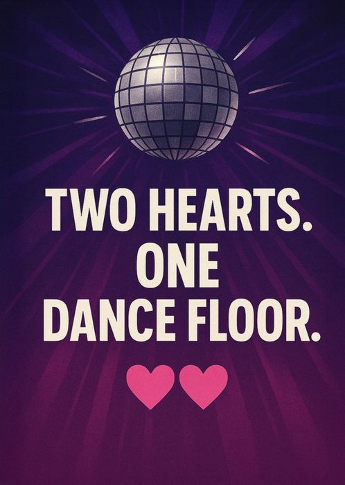 Two Hearts One Dance Floor Disco Ball & Hearts Wedding Card