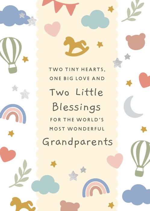 Two Little Blessings World's Most Wonderful Grandparents New Baby Card