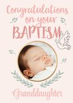 Congratulations on your Baptism is written in large calligraphy type font above two photo upload boxes. Below text reads: 'Granddaughter', this can be personalised!
