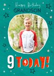 Typographic With Stars Happy Birthday Grandson Personalise Age Photo Upload Card