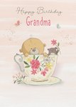 Uddle Happy Birthday Grandma Illustrated Teacup and Saucer Birthday Card