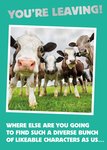 Text reads: "You're Leaving Where Else Are You Going To Find Such A Diverse Bunch of Likeable Characters as Us"