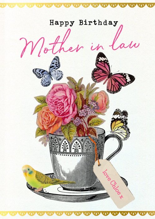 Vintage Flowers Butterflies Traditional Happy Birthday card for Mother in Law