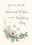 "John & Michelle warmest wishes on your wedding day". 'John & Michelle' can be personalised!