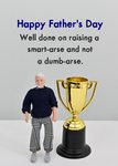 “Happy father’s day. Well done on raising a smart-arse and not a dumb-arse.”