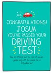 Text reads: "Congratulations! Josua you've passed your driving test, hey no offence, but the rest of us are gonna stay off the roads for a little while, ok?". 'Josua' can be personalised!