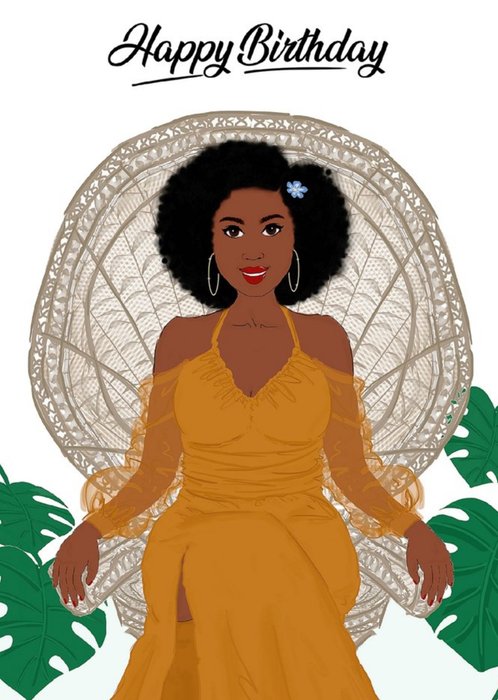 Woman Orange Dress Birthday Card
