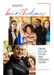 "Happy birthday from all of us on the finance team!". 'From all of us on the finance team!' can be personalised!