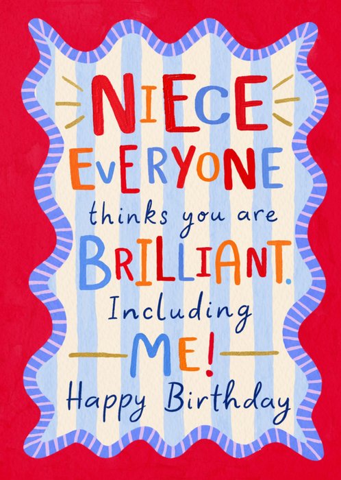 "Niece, everyone thinks you are brilliant. Including me! Happy Birthday!"