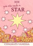 Features a tarot style star illustraion. Text reads "You are such a star Congrats Vanessa".