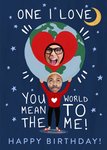 Front of card: Featuring an illustration of an individual uplifting the globe, embraced by a heart amidst the enchanting expanse of a midnight sky with face upload frames.