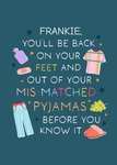 "Frankie, you'll be back on your feet and out of your mis-matched pyjamas before you know it."
