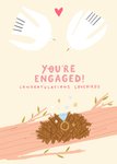 You're Engaged Illustrated Lovebirds Nest With Ring Diamond Engagement Card